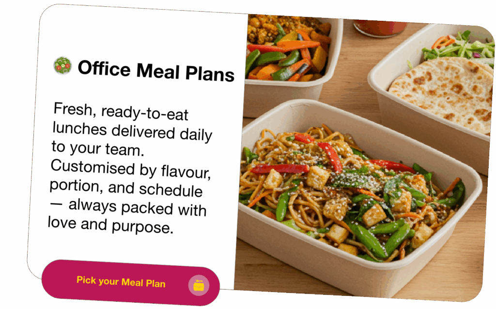 Teams come to us for the flavour, stay for the impact. We’re all about good food, great energy, and meals that actually make a difference to your day.